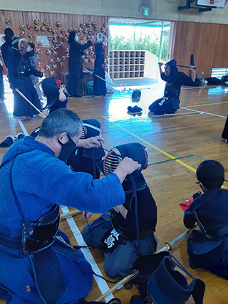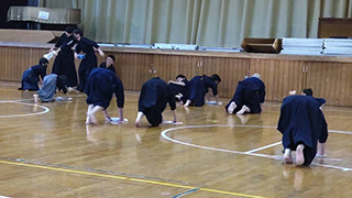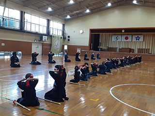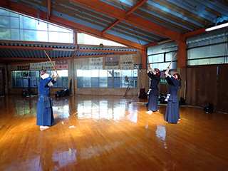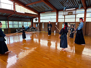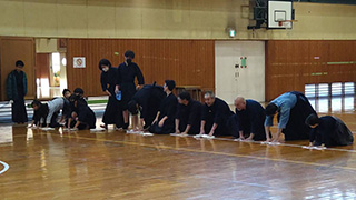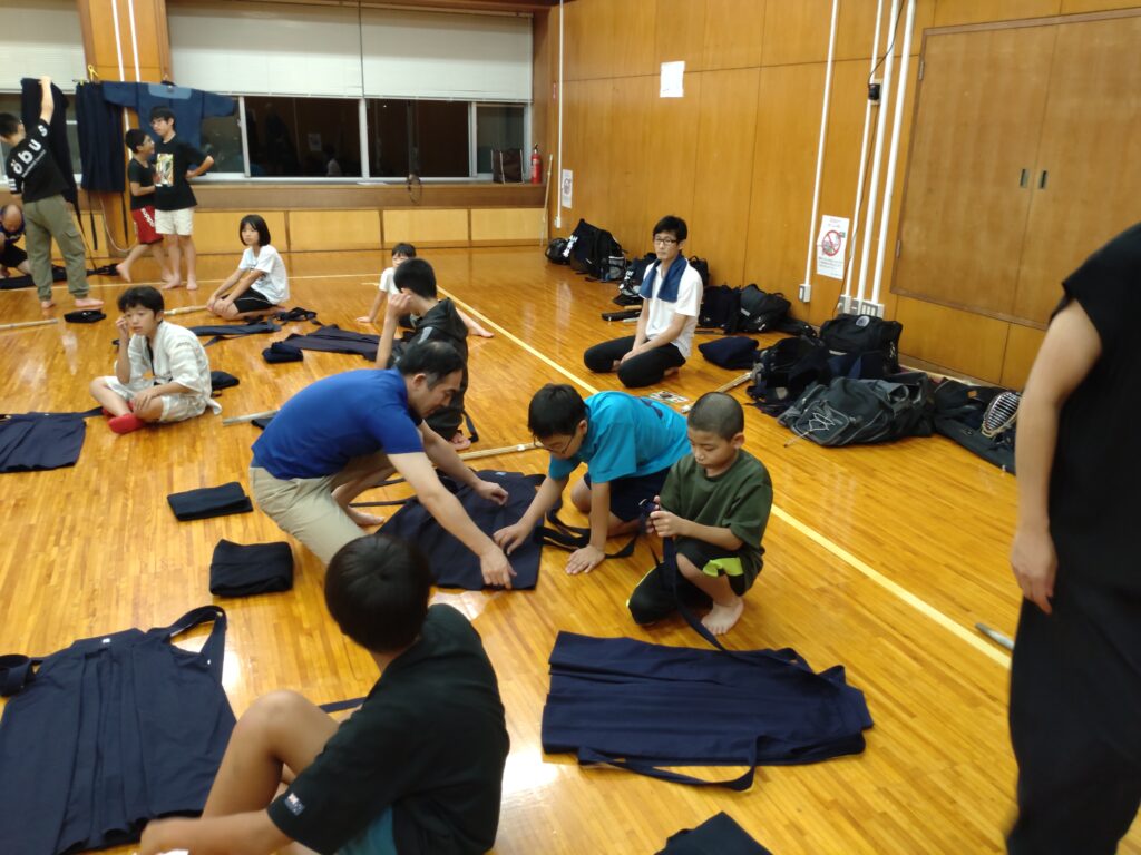 今回は、南先生の着装・恩田先生の準備運動・鳥海先生の道着袴の畳み方・上野先生の竹刀手入れ・松林先生の試合における反則と充実した講義の数々と稽古、7人制リーグ戦と盛りだくさんの合宿となりました。