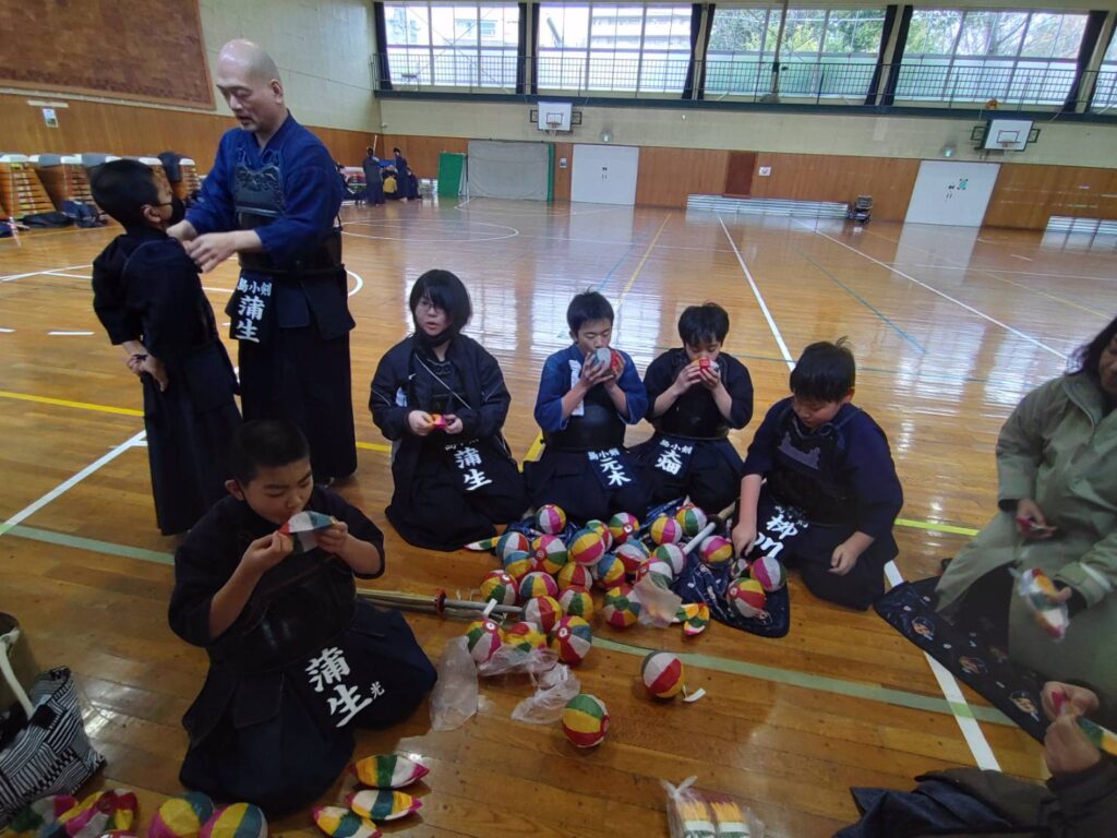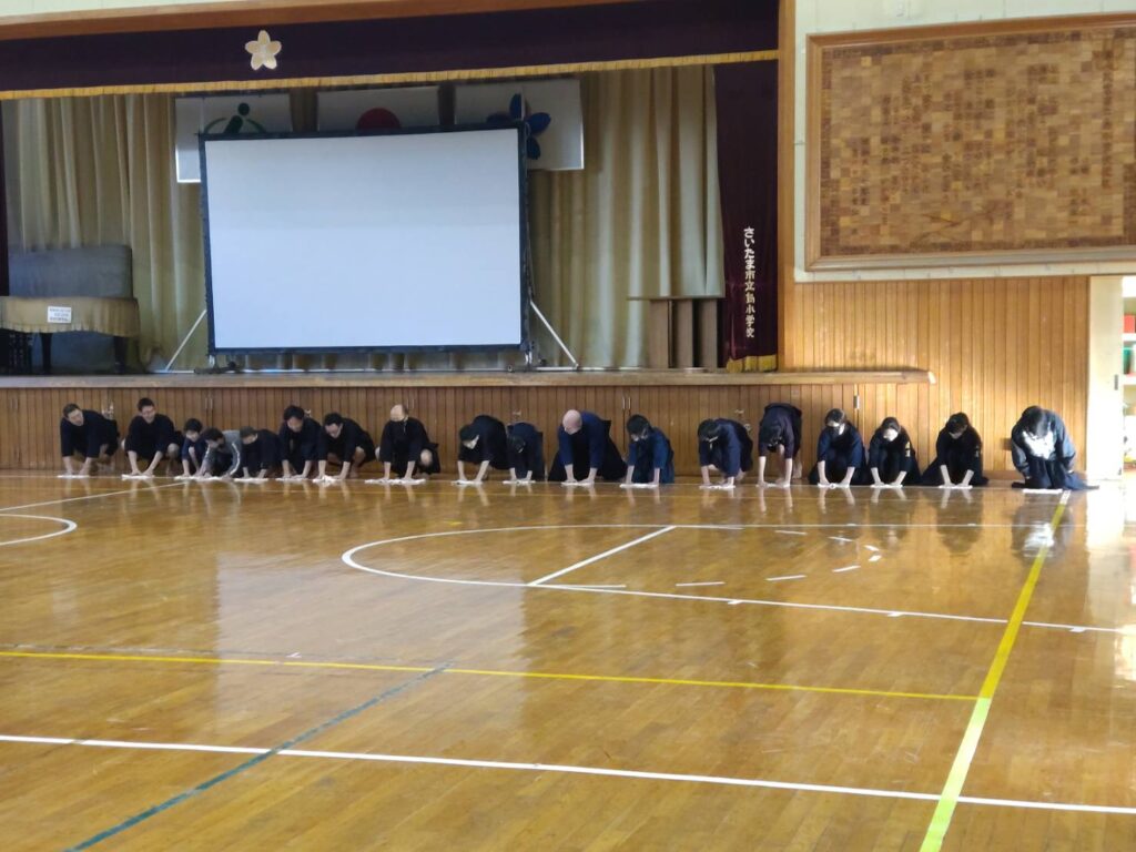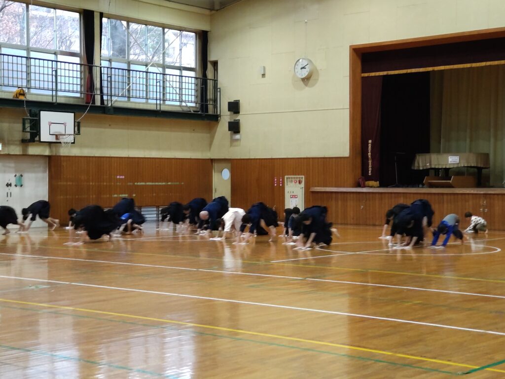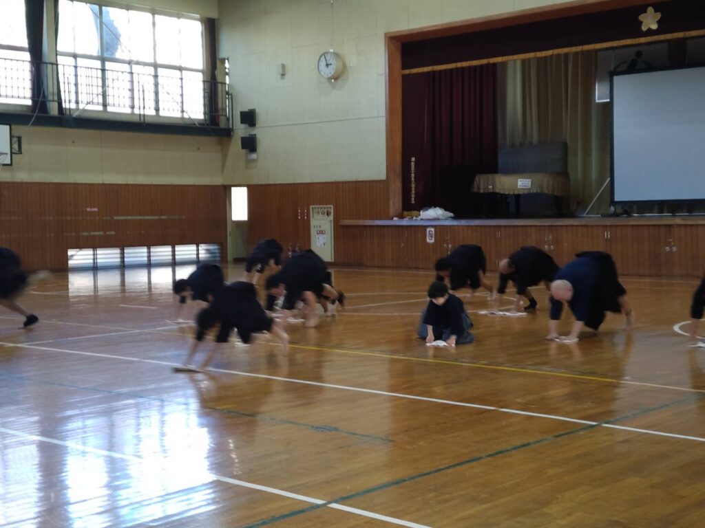 今日で今年最後の島小体育館での稽古。感謝を込めてみんなで雑巾がけ!